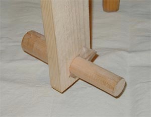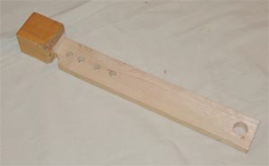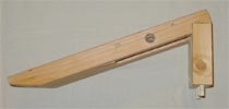 The bridge is made from an upright about 4-2/4 inches high, and a plank about 17 inches long. The mortise for the dumbhead runs from about 8-1/2 inches to 14-3/4 inches from the lower end of the bridge. The pivot for the dumbhead is 8-1/2 inches long and 3/4-inch in diameter.